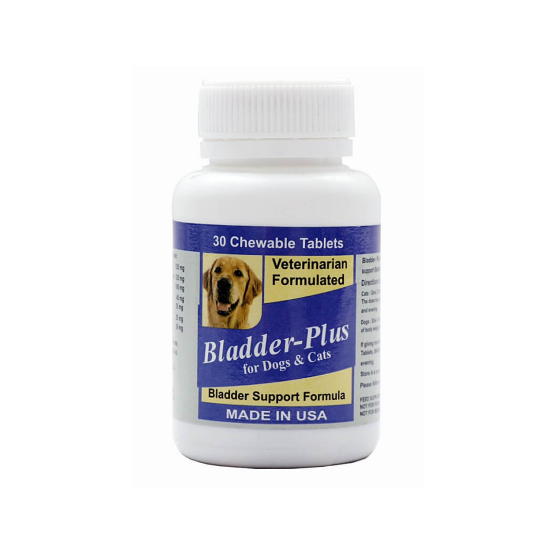 Bladder-plus for Dogs & Cats 30tabs Bladder-plus is Recommended to support Bladder health. Directions for use: Cats : Give 2 Chewable Tablet daily. The dose may be divided into morning and evening. Dogs: Give 1 Chewable Tablet Per 12.5kg of body weight, daily. If giving more than 1 chewable Tablets, divide between morning and evening.This is to support Bladder health.This is for Dog and Cat.Pack contains 30 Tabs.