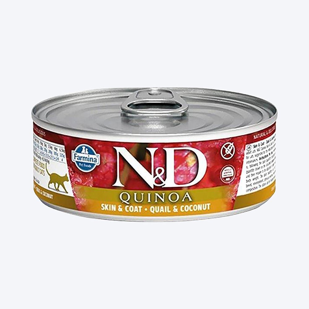 N&D Quinoa Skin & Coat is a complete dietetic food for cats, suggested for the reduction of ingredient and nutrient intolerances.