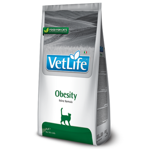Farmina Vet Life Feline Formula Obesity dry cat food is a highly recommended diet for adult cats for helping them to reduce excess body weight. The diet provides a lowered energetic density and enhanced structural carbohydrate which maintains an ideal weight in the feline. L-Carnitine present in the food breaks down excess fat deposits into energy. Farmina Vet Life Feline Formula Obesity offers soluble fibres for assisting a higher nutrient absorption and for facilitating a healthy bowel movement. EPA and DHA are vital fatty gives an anti-inflammatory effect and promotes good eyesight in cats.Reduction of excess body weight. Farmina Vet Life Obesity is a complete dietetic food for adult cats formulated to reduce excess body weight.
