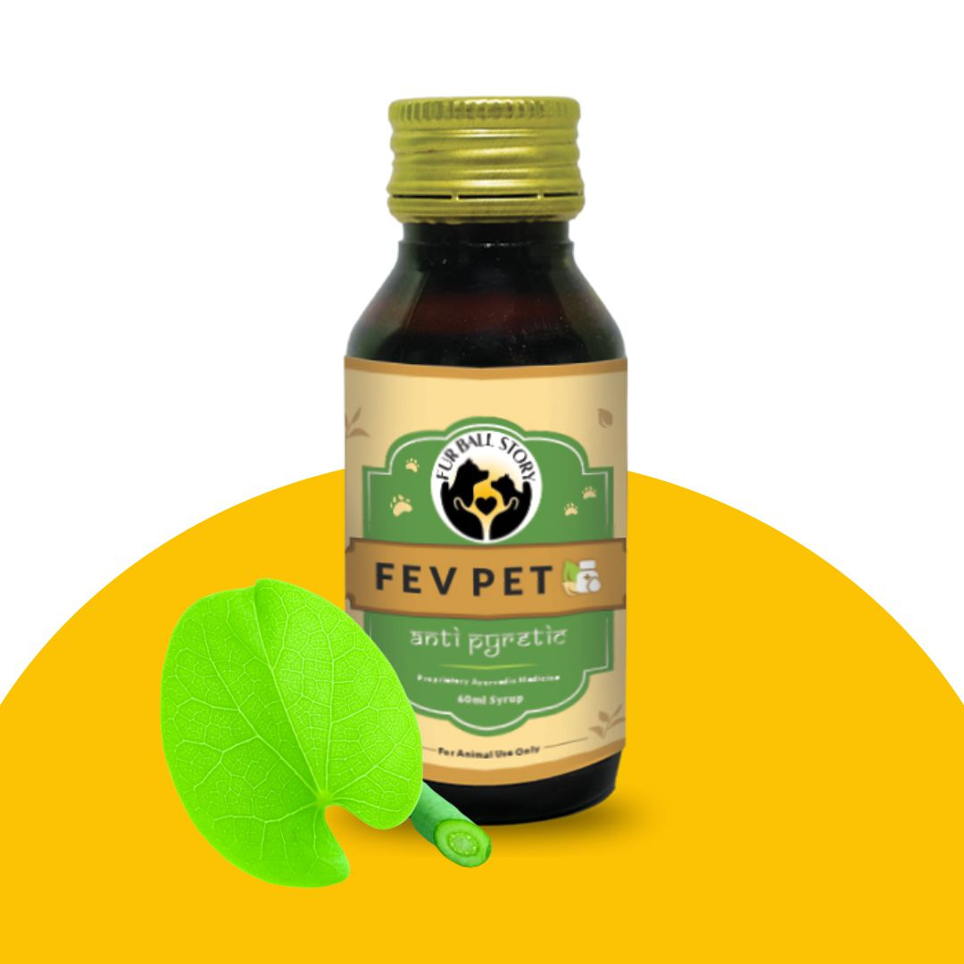 Fev Pet syrup is a unique combination of herbs that have anti-pyretic and analgesic action, thereby helping in the management of various types of fever in pets.