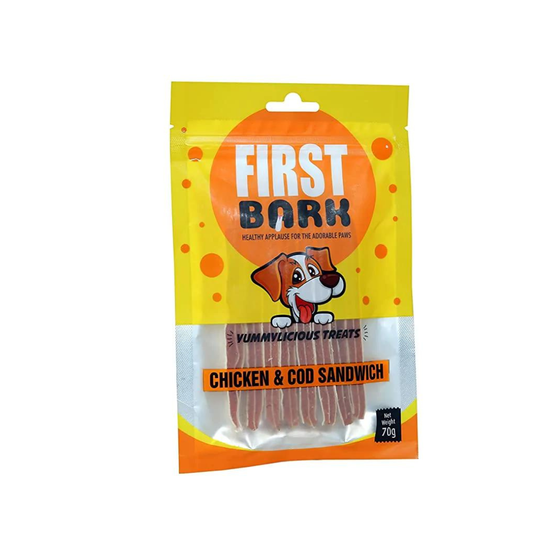 FirstBark Chicken & COD Sandwich, High Protein, Fully Digestible Healthy Snack & Training Treat, Free from by-Products & Gluten, Chicken & COD Sandwich 70g Delicious, Nutritious, Well-Balanced & Perfect Treat For Your Pet Chew Make Strong Teeth and Gums Ensure Good Overall Health of The Dog. High in Protein That…