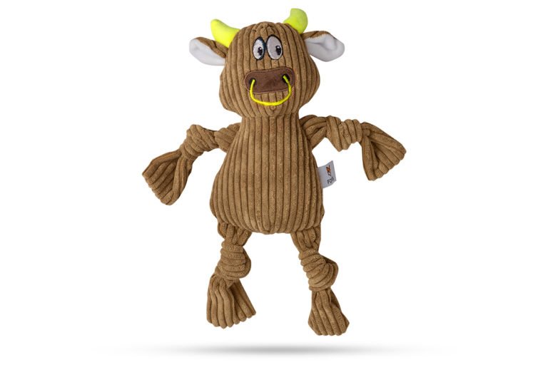 Fofos Fluffy Brown Cow Squeaky Dog Toy