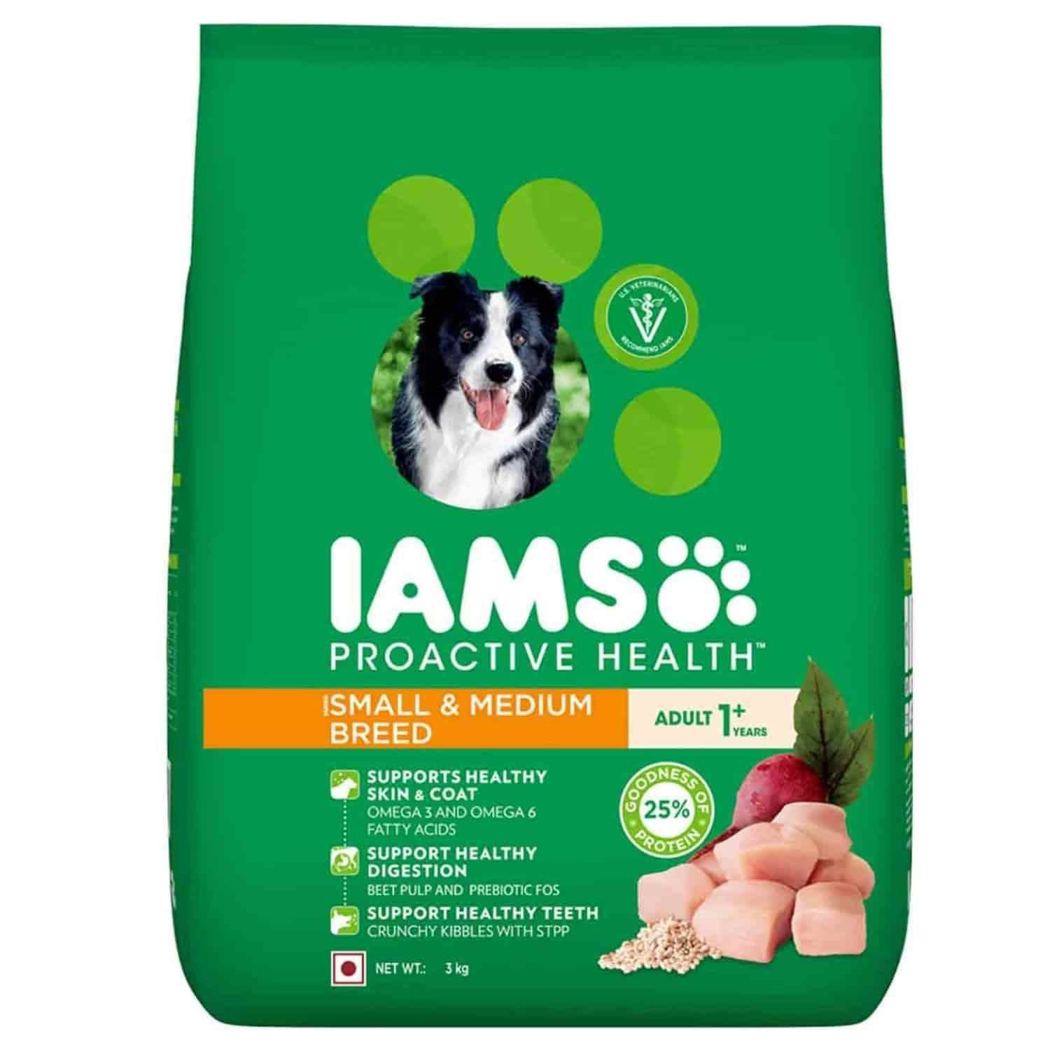 IAMS Dry Food is for Small & Medium Breed dogs less than 1 year. It is made keeping mind the best essential nutrition for your pet. The diet is suitable for Small & Medium Breed dogs like Lhasa Apso, Tibetan Spaniel, Pug, Beagle, etc. The products help in making the bones stronger with the help of calcium & phosphorus. Vitamin E helps in making the immune system stronger and making the teeth healthier. Omega 6 and Omega 3 helps in providing healthy skin and making a healthy digestive system.