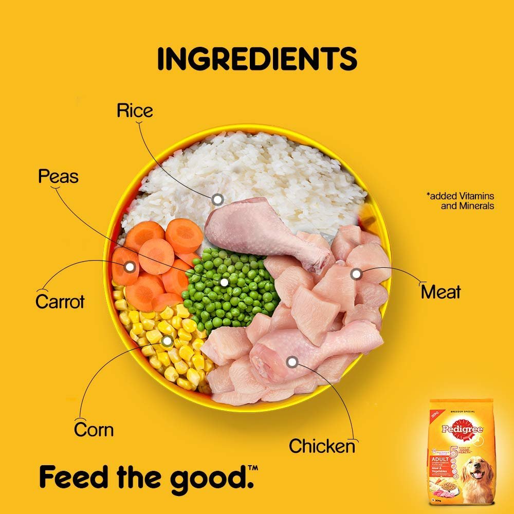 Packed with nutrition and flavour, it is a complete meal for adult dogs. All of Pedigree’s recipes are made in consultation with the Waltham Centre for Pet Nutrition. This is to ensure that your pet is well-nourished and healthy at any life stage. PEDIGREE complete and balanced Dog food for adult Dogs is a wholesome meal packed with essential nutrients vital to the healthy growth of your pet. PEDIGREE, with the goodness of cereals, meat, chicken, and the nutrients blend into a tasty and healthy treat for your furry friend. With PEDIGREE, you are sure to see the 5 Signs of Good Health in your pet upon feeding him 2 bowls (per the given feeding guidelines) a day for just 6 weeks. These signs include proven Healthier and Shinier Coat; Strong Bones and Teeth (from Ca:P ratio & levels); Digestive Health (from Dietary Fibre); Strong Muscles (from Protein); and Improved Natural Defence (from Vitamins (Vit E) and Minerals) At PEDIGREE recipes are developed based on research from the Waltham Centre for Pet Nutrition.