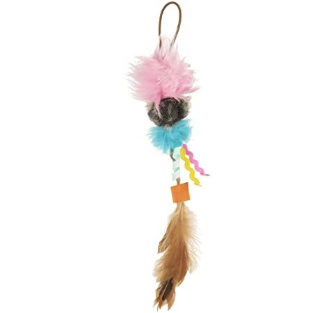 Smarty Kat pomp player door dangler catnip and silver vine cat toy a 3 in 1 toy sure to please any cat! Launch-able for interactive play or hang Just out of cat’s reach to encourage jumping with real feathers and mixed textures are enticing for cats to come back for more. Contains an exciting blend of silver vine and catnip. Silver vine, a wild-growing herb foraged in the mountains of Japan and China, has a strong natural effect on cats, even some that don’t respond to catnip. After extensive testing to find the perfect blend. Our proprietary blend was created as an Ideal alternative for finicky felines who need a little extra excitement! It’s more potent than catnip and as pure as can be! Smarty Kat gives pet parents the best of all worlds: innovative products, stylish designs, environmental responsibility, and exceptional value with a variety of toys to meet a cat’s need for play, scratching, wellness, retreat, rest, and fun! Smarty Kat products are designed to meet child safety standards and are backed by our 100% satisfaction.