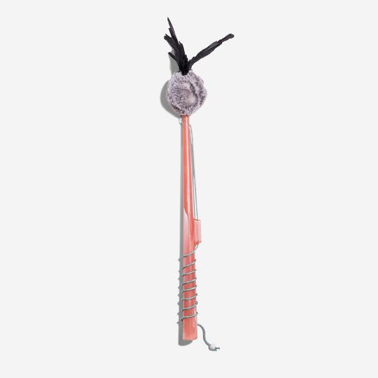 The Tango Wand Cat Toy has two scratch safe play modes. Dangle the pom-pom with feathers and bells off the wand to get your cat jumping in every direction orĀ  keep the pom-pom close to the wand for more controlled play.