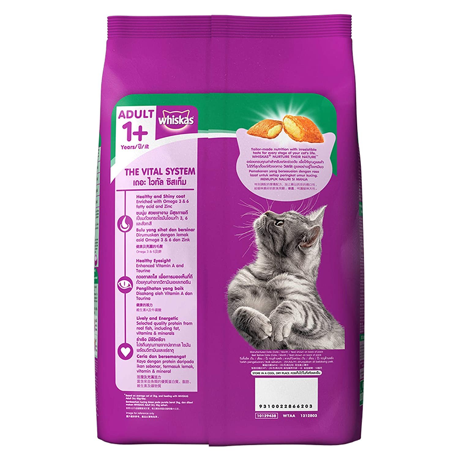 Whiskas adult cat food is the nutrition that your cat needs for a healthy and active lifestyle and makes for an irresistible cat food for your special furry friend. Whiskas cat food is a complete and balanced meal designed to take care of your cats daily nutritional requirements and provide it with all the vitamins and minerals needed for a healthy and happy life, making it an ideal treat. Whiskas dry cat food helps support the cat’s vital system by providing it a healthy and shiny coat, healthy eyesight, and energy to be lively and active. In addition, with a texture that appeals to the palate of your feline, Whiskas ensures meal time is filling and fun!